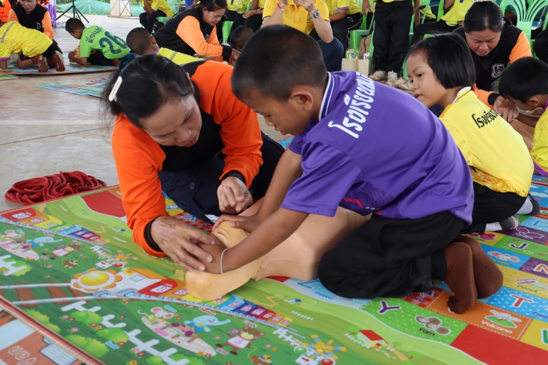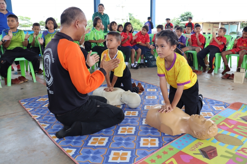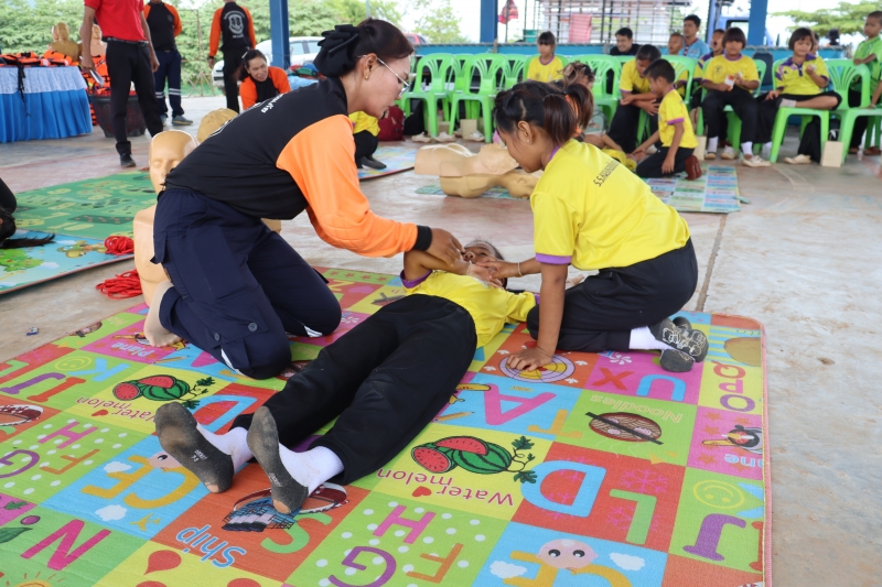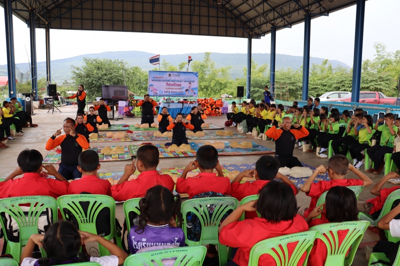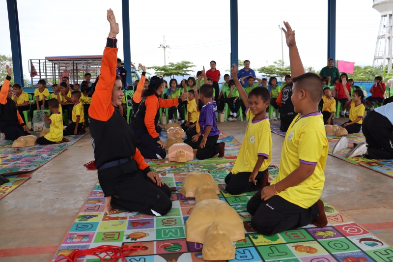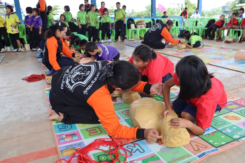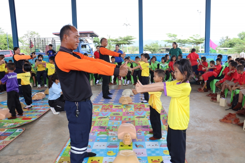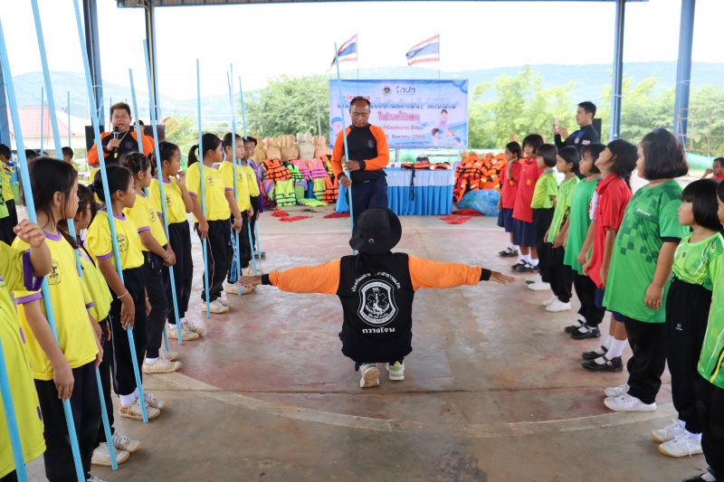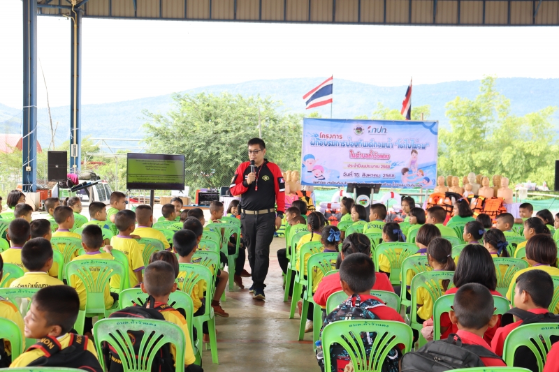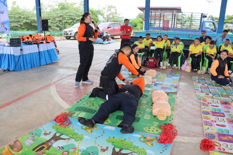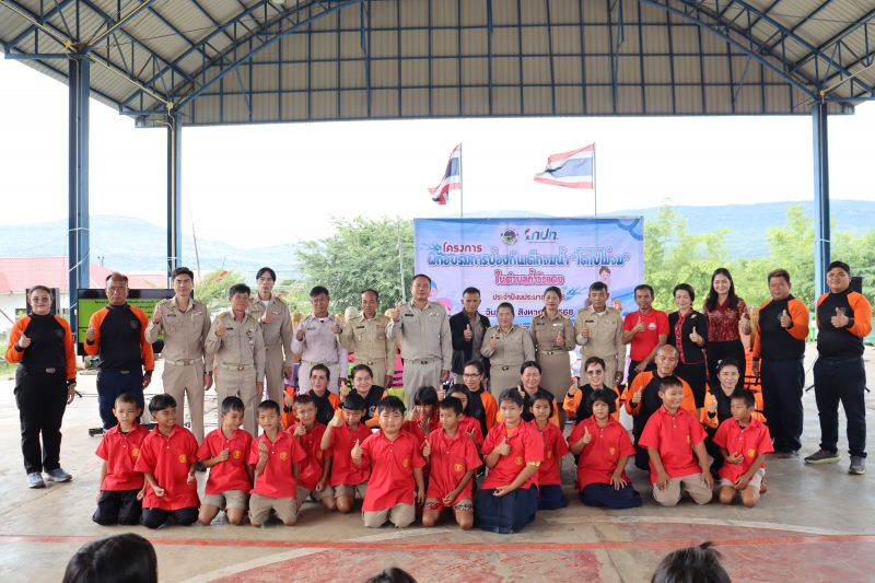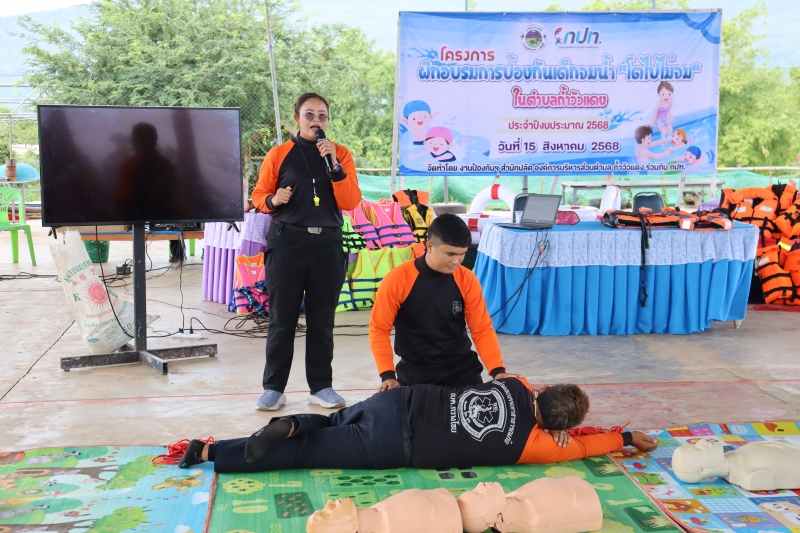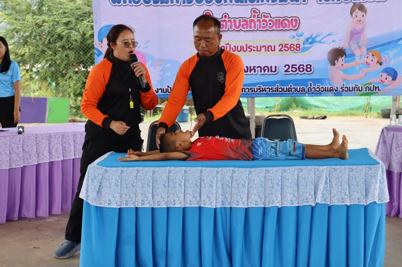 นำโดย นายอาทิตย์ ศิริบุตวงศ์ นายกองค์การบริหารส่วนตำบลถ้ำวัวแดงพร้อมด้วยคณะผู้บริหาร สมาชิกสภาฯ คณะกรรมการกองทุนหลักประกันสุขภาพ หัวหน้าส่วนราชการ พนักงานส่วนตำบล คณะครู และนักเรียนชั้นประถมศึกษาตอนต้น โรงเรียนบ้านบ่อทอง/โรงเรียนบ้านหัวนาคำ/โรงเรียนหนองหอยปังบำเหน็จวิทยา/โรงเรียนบ้านโนนถาวร/โรงเรียนบ้านหนองไห งานป้องกันบรรเทาสาธารณะภัย ได้ดำเนินการจัดโครงการฝึกอบรมการป้องกันเด็กจมน้ำ  โตไปไม่จม ในตำบลถ้ำวัวแดง ประจำปีงบประมาณ 2568 ณ อาคารโดมองค์การบริหารส่วนตำบลถ้ำวัวแดง อ.หนองบัวแดง จ.ชัยภูมิ |